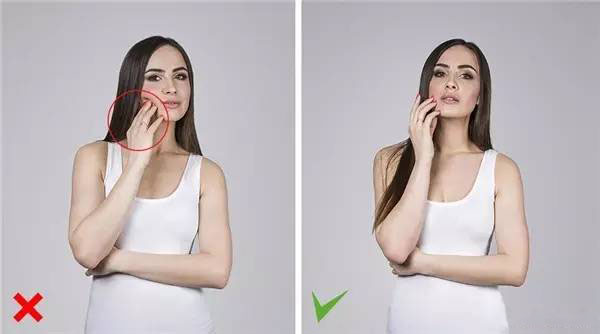 4.手轻触脸颊,嘴微微张开,会让你更有吸引力。不要用力过猛,不然看起来像牙痛。