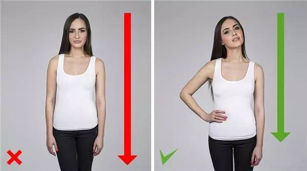 5.单手叉腰,手臂自然地下垂,脸微侧,不要过于僵硬。