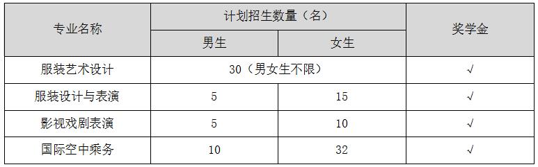 1、我校在中国招收艺术类本科专业;专业包括:服装艺术设计、服装设计与表演、影视戏剧表演、国际空中乘务四个专业,学制4年本科学士学位。