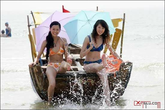两位佳丽欢笑戏水