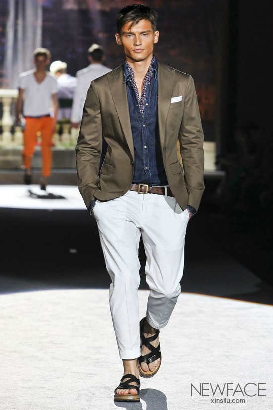 Dean和Dan Caten是21世纪的杂耍演员,如果脱离了俏皮多姿的杂耍,他们就无法很好的展示他们的新一季作品。今天的T台上走出了一些性感的斯堪迪纳维亚渔夫,一队半裸的米克诺斯岛壮男,两个清爽的罗马小子,几个狂野的摇滚乐手,还有Kazaky,四个来自乌克兰的妖艳美男,他们的拿手好戏极具挑战性,那就是穿着 紧身皮裤和超高跟的鞋子跳舞。当然了,还有很多服装展示。