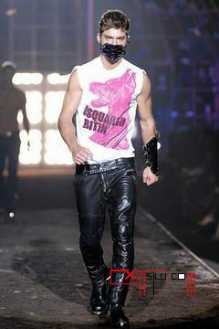 Dsquared才以性感阳刚的热血岛国型男样貌来结束2007年春夏的轻松渡假风尚;紧接著Dean和Dan这对Caten双胞设计师,却在本季的秋冬设计概念来个超级大转弯,以充满强烈反社会情结的重装防卫姿态,跨大步走出伸展台。