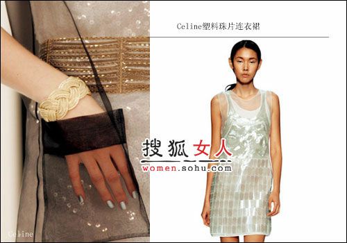 图4:我一直坚持毫不张扬的设计,即使出席晚宴我也建议女士们不要太过“闪耀”。今季流行哑光珠片,仿旧处理的金属珠片给人沉稳、庄重的感觉。富有光泽的塑料珠片,我会用一层透明薄纱罩在上面,让光泽更加有层次和含蓄。
