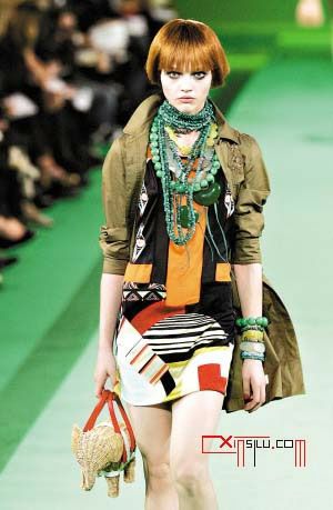 深受年轻人喜爱的迷你风格曾一度成为街头流行,因此在本季,迷你怎少得了充满街头风格的细节?本季的迷你装成功打造了一个个年轻活泼的街头迷你形象,牛仔超短裙、涂鸦式的图案、长短混搭的穿着方式,以及各种稀奇古怪的丁当配饰,塑造了生动的街头形象,像Christian Lacroix本季采用涂鸦式的一件式连衣裙搭配中长度的风衣,再配上一串串大型绿色圆珠项链,赋予了街头迷你装耳目一新的观感。不仅如此,充满摇滚感觉的超短装扮也成为街头迷你的演绎方式,紧身热裤以及充满动感的闪光皮革服装,结合热裤的穿着看起来十分新鲜。