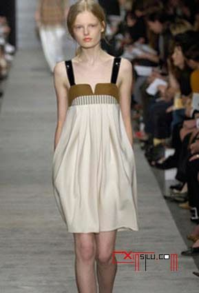 高腰线的设计是本季的流行要点。各个大牌的设计师们在T台上演绎着高腰线裙装的