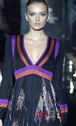 高腰线的设计是本季的流行要点。各个大牌的设计师们在T台上演绎着高腰线裙装的