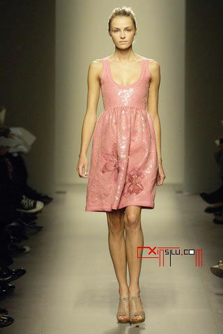 这一季可爱的关键词绝对是“高腰”,就连一向知性的BV也推出了这样一款粉嫩闪动的高腰小礼服。简单的背心裙,高腰的设计使得裙摆形好看的花苞状,甜美的感觉瞬间溢了出来,加上缀满裙身的细致钉珠和透明亮片,行走间的光泽流动让可爱多了几分华丽。值得一提的是设计中巧妙的“留白”——裙面上唯一没有钉珠亮片的部分——两处手绘花朵,绽放的姿态让呼之欲出的甜蜜生动了起来。