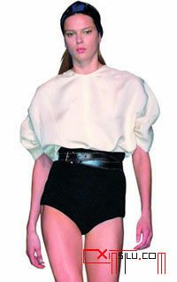 如果你时尚大胆尽可以尝试一件Prada泳装底裤式的短裤,上面搭宽松时装款上装,注意腰部收紧,这种松紧比例便是今年最in的轮廓。与超短轮廓同时受到瞩目的是各种宽型配饰,宽腰带的风行将延续下去。提醒你,今年短裤的长度一定在大腿以上,若是美腿就尽情露,别忘了配上高跟鞋和透明的长筒丝袜等本季的性感元素;若大腿粗就穿一件及膝风衣和长靴,优雅前卫同样动人。