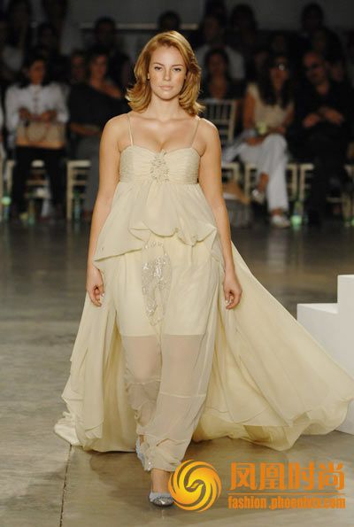 2007年6月13日,巴西圣保罗,著名品牌Fause Haten2008夏季时装周举行,鹅黄、翠绿、肉桂华服缤纷夺目,炎炎夏日狂刮绚丽飓风,男模特将艳红领带别在胸口大玩另类,女模特的小丑图案吊带茧型裙个性十足。