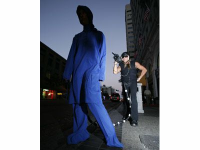 6. 照片上这个模特穿了一件和摄像机互动的衣服,摄像师用镜头对准这件衣服时,经过特殊技术镜头里只会显示出模特模糊的外形轮廓。