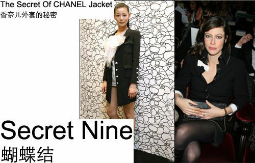 不论皮衣或 Jersey 面料的外套,加上可拆卸的缎面蝴蝶结饰,衣服便显得与众不同。它让香奈儿变得丰富多彩,不再是成熟女性的专利。