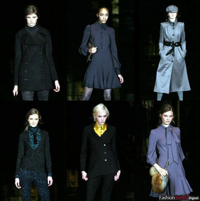 黑色在黑夜泛着幽兰的光,羊腿袖紧身连衣裙、双排扣外套、植物印花。