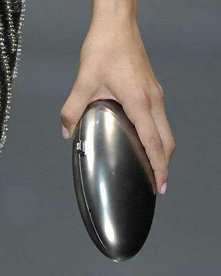 金属质感的银色手包与黑色华丽晚装相得益彰,乍一看仿佛一个小巧但却坚固的太空陨石被拿在手中,流线型的款式将简约前卫的时尚气质凸现无疑。也只有GARMANI才能让今年的银色未来感演绎得如此淋漓尽致。