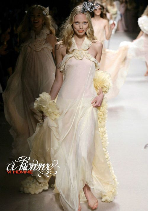 SONIA RYKIEL宛如精灵变身三部曲,最先玩针织品,中段推出黑缎短裤装的使坏轮廓,最后是甜美中带性感的雪纺薄纱,像是半精灵、半淑女的奇妙混和体