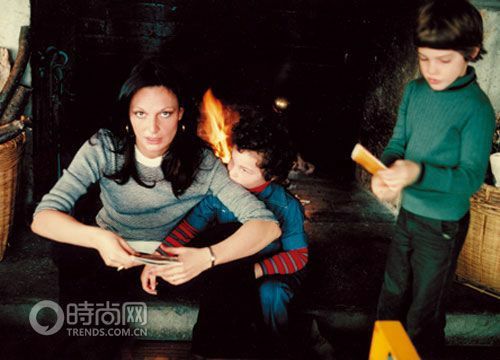 1977年,Diane von Furstenberg和儿子、女儿在一起。