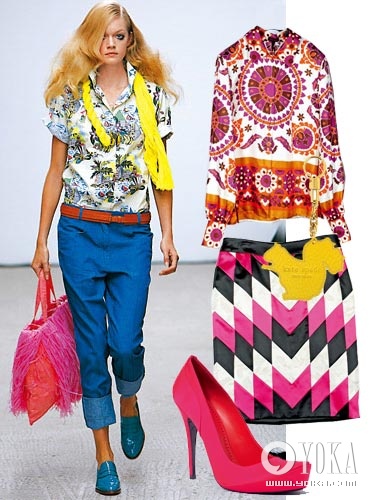 春天温暖灿烂的繁花景象,不但令人心情愉悦、更能激发设计师天马行空的创意发挥。08年的春夏花的落落大方,花的有条不紊,花的夺目耀眼,为热闹的时尚圈增添新鲜璀璨的迷人焦点。 花的不落俗套--外套 这就是大胆的混搭效果,你的颜色里不超出3种色系你就是安全的,超过3种颜色还搭得很美,那么你就是摩登的。