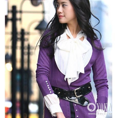 一直以来没有推出时尚界的迷人紫色,本季开始复兴,越来越多的受到瞩目。无论是各个时装秀还是欧美明星的日常穿着,紫色衣衫总是不断地吸引着人们的目光。当然,紫色也是职场女性的最爱,搭配纯白色的衬衫与黑色的宽腰带,迷人气质立即呈现。