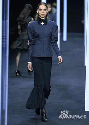 2008年秋冬系列一反上一季的柔和浪漫情绪,再度回归简单、利落、时髦的感觉。刀刃般的,极瘦,膨胀感,斜纹软尼,简单纯粹,都是这一季的关键词。