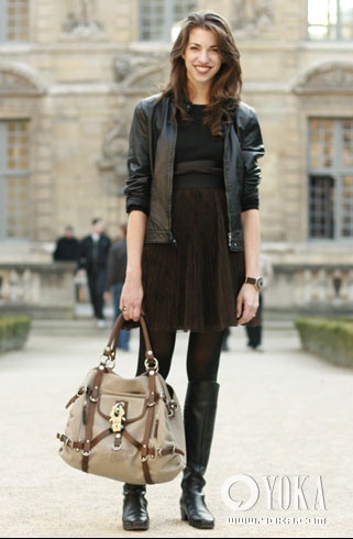 雪纺的娃娃裙会让人联想起可爱的芭比娃娃。而这位MM却在娃娃裙得外面穿上皮夹克,看起来很不搭,没有品味。换成短款的棉质小外衣会更好些。
