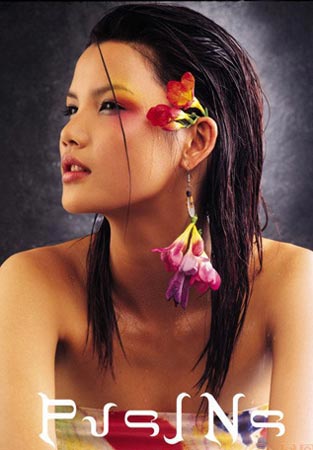 莫万丹:湿发更性感 这样微微打湿的秀发造型,配以风情万种的鲜花头饰,绝对可以艳惊全场!适合参加沙滩派对时打造!