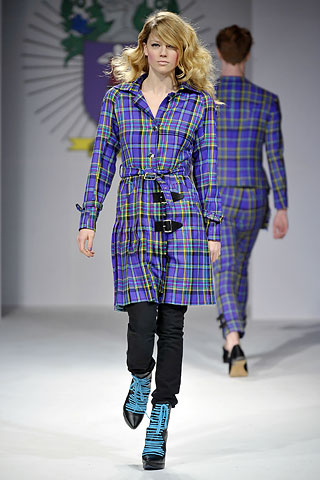 Henry Holland 和Agyness Deyn成为了伦敦年轻时尚的代名字,这对自强不息的IT男女,在短短6个月中,将自己变成了名声在外的痞子风格设计师和炙手可热的封面女郎。Holland一直延续着自己玩闹的风格,这一季,他用军服上的盾形纹章来表明自己和Agyness的友谊,并劝说Agyness戴上了花格呢的鹿角出场……Agyness和其他模特们都身着淡紫色和黄色的House of Holland花格图案,很有苏格兰风格。