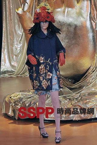 本季,John Galliano女装新品推出大量充满个性的细节饰物,将表现重点放在夸张的衣领和长羽毛装饰细节等方面。