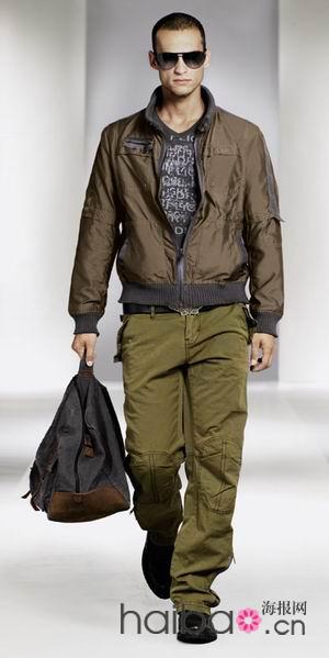 Strellson休闲服的部份,08年春夏以“超音速”作为主题,完美地将空军军装融入时尚领域。这次的主题,灵感取自于飞官所从事的“飞行”与“跳伞”活动,有些甚至运用合成纤维材质,但绝对流露出时尚感的不羁帅气;搭配上仍以对比风格为主轴,比方说短配长、紧身搭宽松,给人更为活泼的视觉惊喜。由于休闲系列服饰讲求舒适便利的实穿性,材质选用以尼龙布为主,甚至故意皱面处理,而棉混尼龙、防撕裂的补强缝边、水洗效果以及印染效果等,均增添不少粗犷的大地男儿气息。