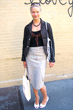 姓名:Lindsay Sullivan 抓拍地点: 王子大道 外套:Diesel 裙子:Christian Dior 铅笔裙 带古董项链 包:H&M 宣言:“优雅和时髦。”