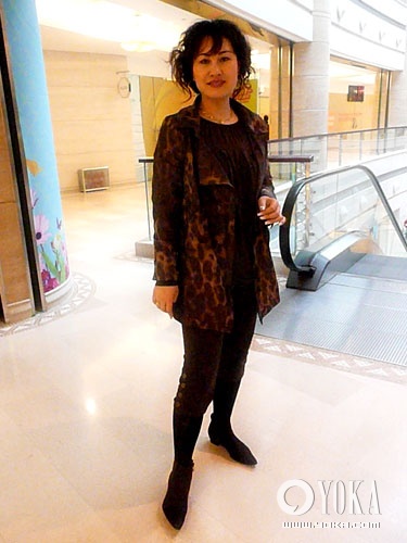 将明度控制在一定的范围里,充分营造成熟干练的女性魅力!貌似圆点的豹纹图案增添了几分亲昵感。鞋子的样式拉长了腿在整体中的比例。整体来说的最优点就是颜色和图案有效展现自我气质。