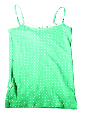 纯棉质地,草地绿色,白色小圆点,只在领口镶了一道同样纯棉的镂空小花边,简单得不带烟火气。b+ab 169元
