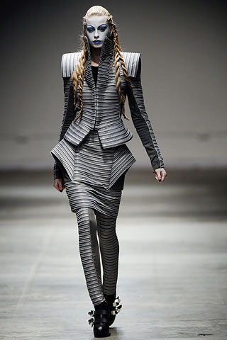 Pugh想要使他的模特看起来像是女武士,因此他加强了对肩部的强调,无论是拉链质地,抑或是法兰绒、羊毛,或者是皮革、PVC之类的合成材料。奇异风格的好莱坞风情是这一系列的的大主题,歌剧风格的过度装饰、坚硬的边棱和一点风趣的小伎俩。比如一件一件束腰礼服,完全是安全别针制成的,一件白色的波雷若背部设计的大衣裙也是如此;所有的设计都能找到山羊毛制成的创意小物件。许多这样的造型出人意料地成为了装饰物的灵感来源,比如夹棉风衣以及宽大的合成革风雪大衣,看起来十分的商务风格,这使得Pugh跻身于一线英国设计师之列,也使得他的爱好者们为他的表现兴奋不已。