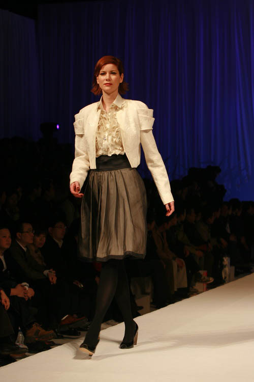 ELEGANT·PROSPER是浙江雅莹服装有限公司(中意合资)旗下主导品牌之一。本届时装周发布的主题为“触摸(TOUCH)”。发布会以独特的服饰语言,用 “触摸优雅(GRACE)”的表现手法对接另一个时空,传达向Grace Kelly及其塑造的银幕形象的敬意,以此诠释现代都市女性对个性的追求和对梦想生活的憧憬。在设计上,采用了对比与混搭相结合的手法,大摆裙与铅笔裙等经典造型历久弥新。夸张的蝴蝶结、复古的宽腰带和精细的金属饰物点缀等,带有ART DECO的意味。