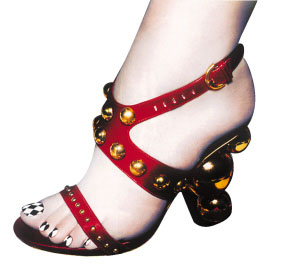 脚踩魔幻泡 Sergio Rossi的殷红绸缎凉鞋本是美艳之物,加上连珠球形鞋跟和大量金属感细节后,成功地进化成为锋利的时尚“武器”。Dior也推出了前掌加厚的金底白面高跟凉鞋,由金色圆珠支撑的鞋跟,则好比一颗躲藏在文静外表下俏皮而富有想象力的心,童趣十足。