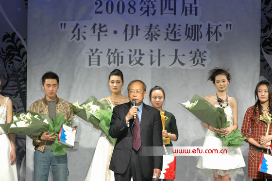 2008年3月30日晚上19时,东华时尚周的第六天。在这六天的时装周中,场场精彩纷呈的时装秀,刺激着所有服装人的眼球,加速时尚界的血液更新换代,推动着时装事业的革命性发展。而在昨晚东华大学逸夫楼的T型舞台上,它再次给所有人带来的是与服装息息相关的珠宝首饰上的完美视觉风暴。 作为当晚的特邀嘉宾,伊泰莲娜集团董事长游德先生、伊泰莲娜集团总监游吕品先生、伊泰莲娜集团营销经理鹿怀祥先生、东华大学副校长宋立群先生、东华大学服装?艺术设计学院党总支书记罗仪华以及院长李柯玲女士等嘉宾领导,出席了这场珠宝首饰的盛宴。