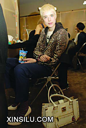 Agyness 真是特别喜欢这件豹纹的机车夹克,许多场合都穿,而且搭配成不同风格还都很不错。豹纹夹克跟她的朋克气质可以说交相辉映。说实话,穿豹纹好看的人真是不多。豹纹夹克配上简单的T恤、窄腿裤、高跟鞋,条纹袜也是点睛的细节, Agyness 也有自己独特的女人味,这种优雅不需要“很做筋骨”的端着,但是却能产生疏离感。