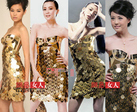 这一套来自versace的金色鱼鳞装估计可以当选07年的最受欢迎撞衫奖,前后共计13位明星和模特穿过,不同的人,不同的细节造型,也带来了不同的效果。将头发披散开来的,更有