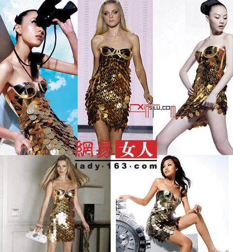 这一套来自versace的金色鱼鳞装估计可以当选07年的最受欢迎撞衫奖,前后共计13位明星和模特穿过,不同的人,不同的细节造型,也带来了不同的效果。将头发披散开来的,更有