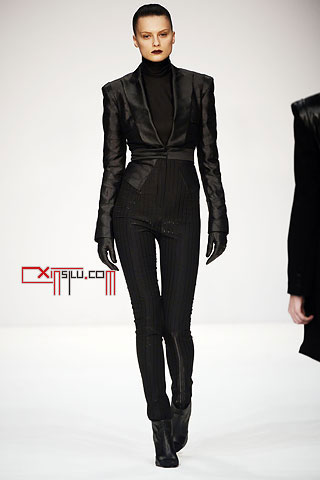 Jens Laugesen这一季和高肩设计干上了。“我用上了双层垫肩,这是男装里面经常使用的”,Laugesen如是说,“我设法将这一设计和紧身胸衣结合,使之带有性感特质”。