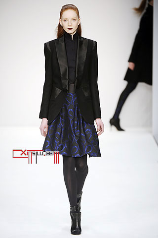 Jens Laugesen这一季和高肩设计干上了。“我用上了双层垫肩,这是男装里面经常使用的”,Laugesen如是说,“我设法将这一设计和紧身胸衣结合,使之带有性感特质”。