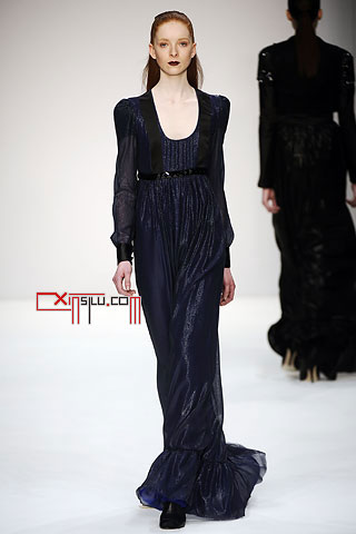 Jens Laugesen这一季和高肩设计干上了。“我用上了双层垫肩,这是男装里面经常使用的”,Laugesen如是说,“我设法将这一设计和紧身胸衣结合,使之带有性感特质”。