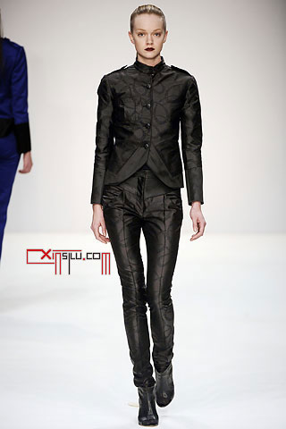 Jens Laugesen这一季和高肩设计干上了。“我用上了双层垫肩,这是男装里面经常使用的”,Laugesen如是说,“我设法将这一设计和紧身胸衣结合,使之带有性感特质”。