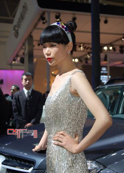 2008北京国际车展,名模吕燕个性复古装扮现身奔驰展台。