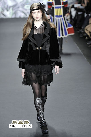 在后台,Anna Sui谈到了她本季的主题:新艺术运动、拉菲尔前派、蒂凡尼的花瓶、丝绸碎褶、古斯塔夫•克里姆特,对了,还有西北太平洋地区的美洲印第安人。一场美丽的大杂烩?也许有些人是这样认为的。
