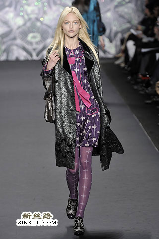 在后台,Anna Sui谈到了她本季的主题:新艺术运动、拉菲尔前派、蒂凡尼的花瓶、丝绸碎褶、古斯塔夫•克里姆特,对了,还有西北太平洋地区的美洲印第安人。一场美丽的大杂烩?也许有些人是这样认为的。