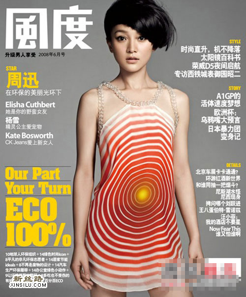 2008年6月4日,周迅为《风度》杂志2008年6月号拍摄封面,短发造型俏丽可人。