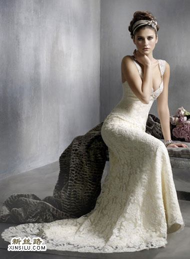 2008婚纱的流行趋势是集体告别了前几季的清凉性感,象是裸肩无带的裹胸式婚纱在2008年终于退出主角位置。2008春夏婚纱将薄纱、蕾丝、刺绣、缀珠等流行元素重新组合,塑造出新娘的端庄新形象,典雅兼具时尚感。