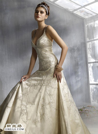 2008婚纱的流行趋势是集体告别了前几季的清凉性感,象是裸肩无带的裹胸式婚纱在2008年终于退出主角位置。2008春夏婚纱将薄纱、蕾丝、刺绣、缀珠等流行元素重新组合,塑造出新娘的端庄新形象,典雅兼具时尚感。