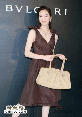 点评:棕色及膝裙庄重古典,蝴蝶结系肩呈现淑女迷人气质,上衣交叉款式包裹出美丽的胸部线条,搭配黑色高跟鞋、米色简约手提袋成就完美盛宴装扮。