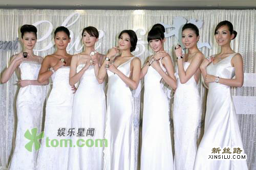伊林名模陈思璇22日率领王尹平、王孝怀、王丽雅、江政怡、宋依璇、邱晓慧等模特儿为台北一场联合表秀站台,清一色白色长裙,模特儿们个个显得典雅不凡。
