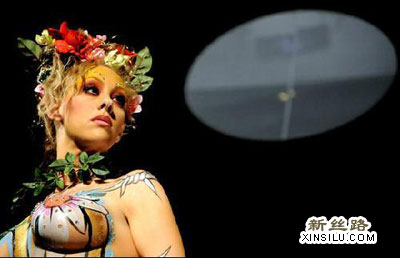 时尚设计师的创意层出不穷。日前在好莱坞举行的时装秀上,模特们一丝不挂地展示了由Bullet 4 Peace设计的奇特时装艺术。模特们裸体后被彩绘上各式图案。